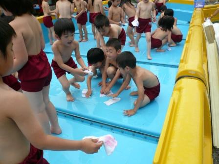 さあ、あとは年長さんがプール掃除をすれば、いよいよ待ち待ったプール開きです。